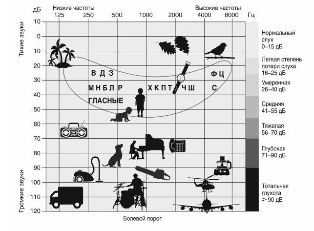 Степени потери слуха